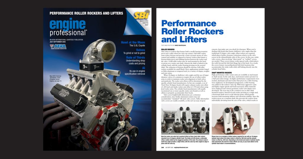 When 18-degree or shallower valve angles and the use of larger diameter valves, it’s common to require the use of offset rocker arms in order to maintain rocker arm alignment to both valves and pushrods. The rocker arm offsets will be determined by the specific cylinder head manufacturer. As but one example, a set of Trick Flow 18-degree heads will require exhaust rocker arm offset of .220-inch and intake rocker arm offset of .550-inch when using Jesel rocker arms. The cylinder head manufacturer will usually recommend one or more specific rocker arm brands as well as offsets to properly accommodate their heads.